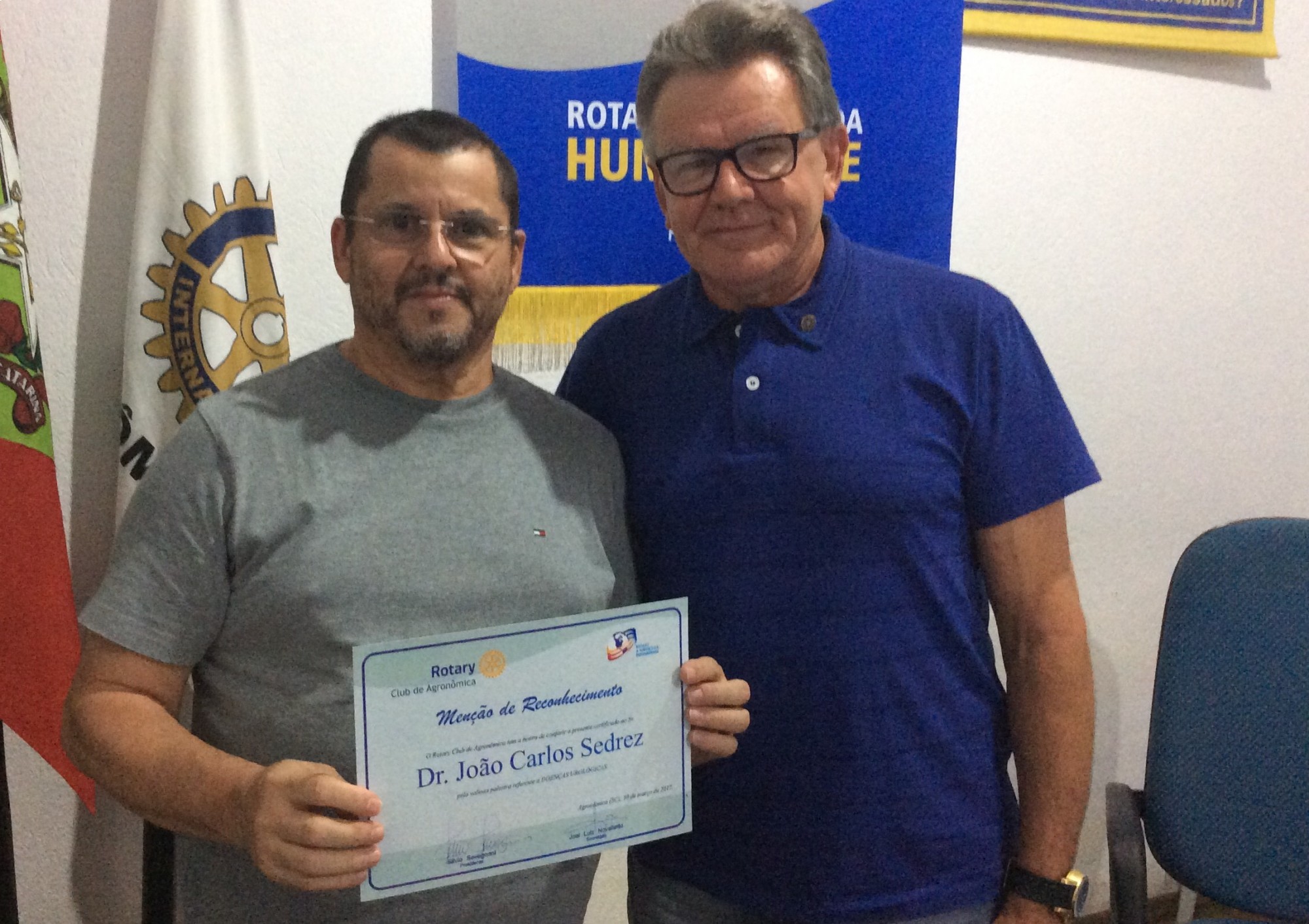 "Eu queria mesmo é agradecer o carinho que fui recebido pelos representantes do Rotary de Agronômica. Busquei uma conversa em forma de bate-papo para que todos pudessem me entender melhor", revelou João.