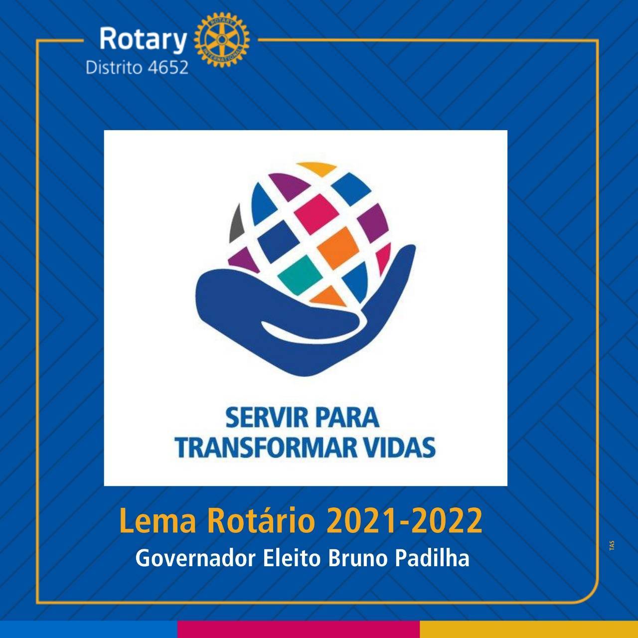 "O lema é importante para entendermos a visão do Rotary no próximo ano rotário. Vejo que nosso próximo lema diz bem o que temos de fazer: SERVIR que é a alma do rotariano e TRANSFORMAR VIDAS. Se formos organizados, com os mesmos objetivos, vamos impactar de fato as comunidades que atuamos. O rotariano vai poder mudar realidades e vidas", destaca o governador eleito 2021-2022 do Distrito 4652, Bruno Padilha. Ele acompanhou a divulgação, de forma virtual do novo lema ao lado de sua esposa Caroline.
